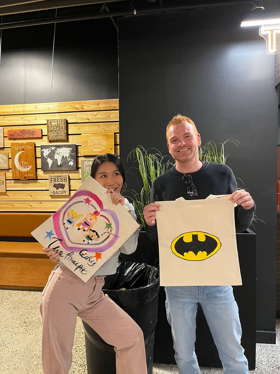 And of course, no shortage of photo ops. Finished totes held up proudly, mid-process shots, and a few “before it went wrong” moments captured for history.