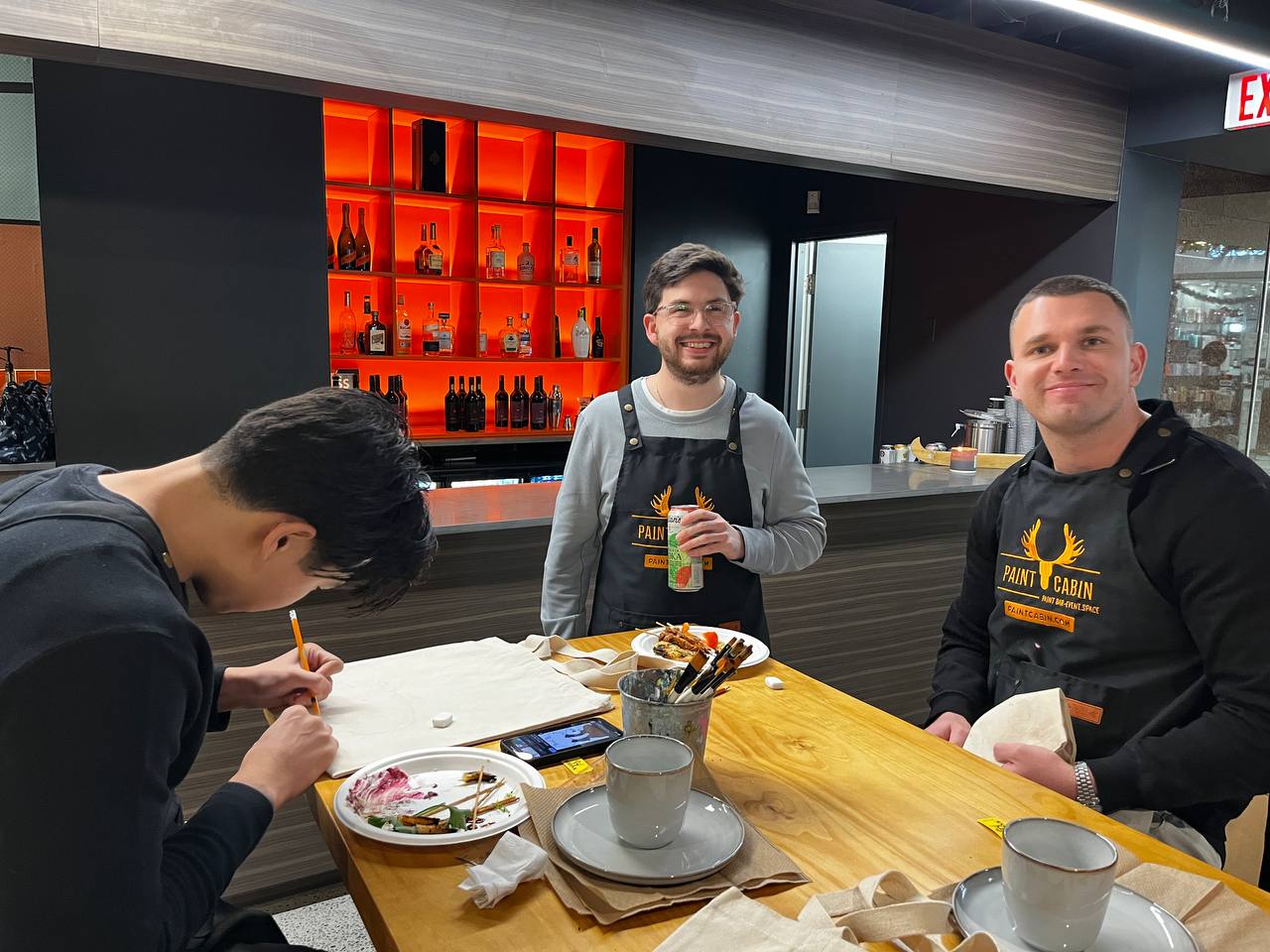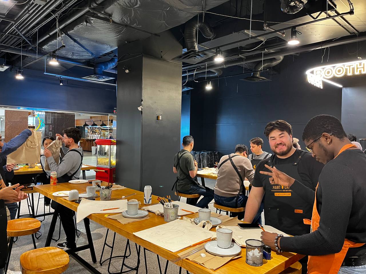 Between brush strokes, there were drinks flowing, snacks disappearing, and plenty of side conversations happening across the tables. It had that perfect mix of focus and distraction—just enough concentration to paint something recognizable, and just enough chaos to keep it fun.