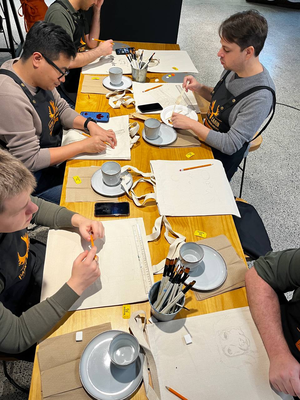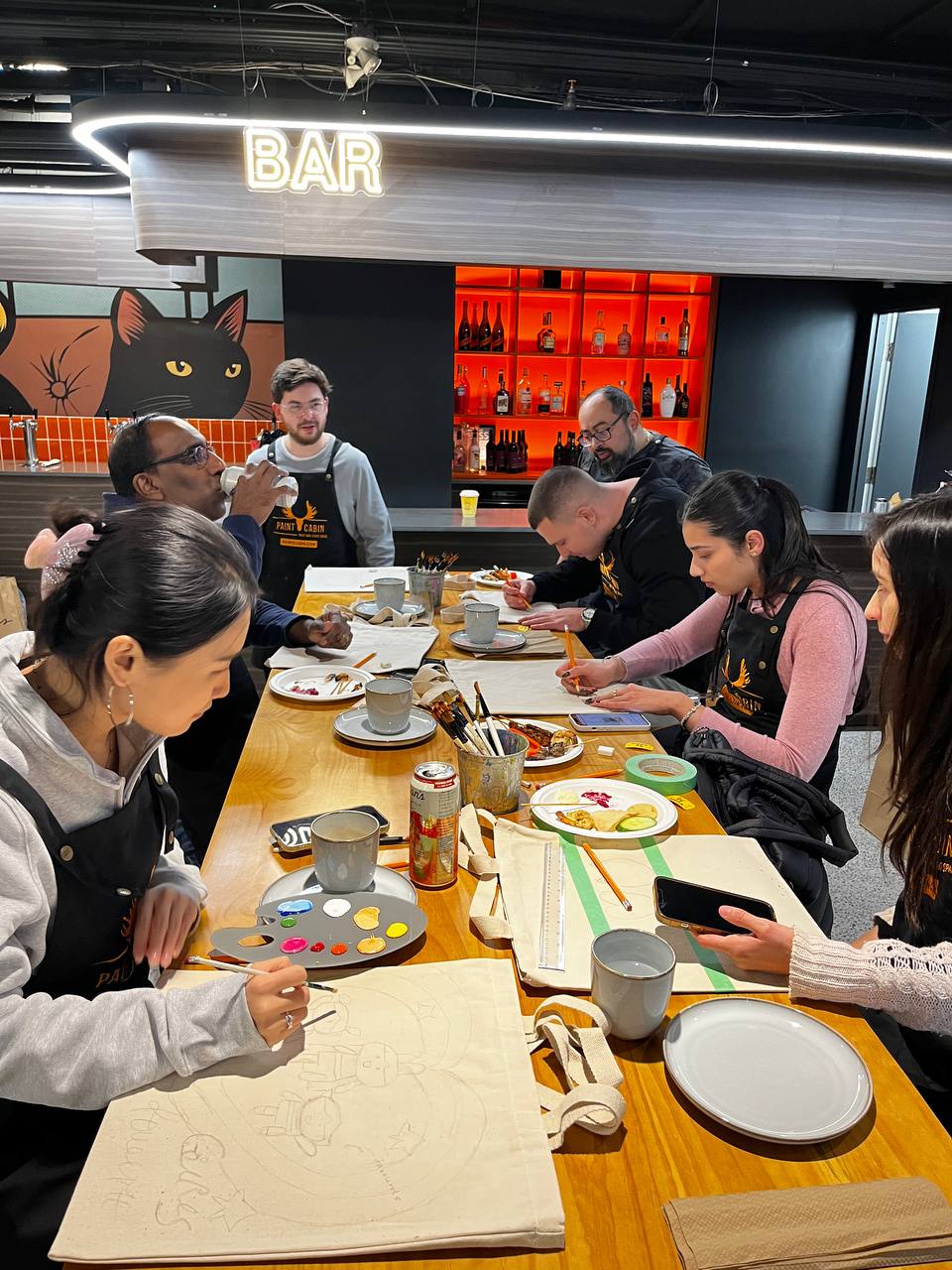 The Aware Ads crew headed to Paint Cabin in downtown Toronto, where things got creative fast. Aprons on, brushes in hand, drinks within reach—this wasn’t about perfection, it was about expression (and maybe a bit of friendly comparison).
