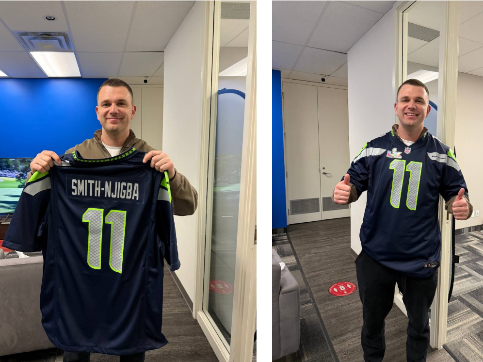 For his winning prediction, Jack received a Seattle Seahawks Super Bowl LX jersey featuring Jaxon Smith-Njigba—and as you can see, he’s wearing it proudly.